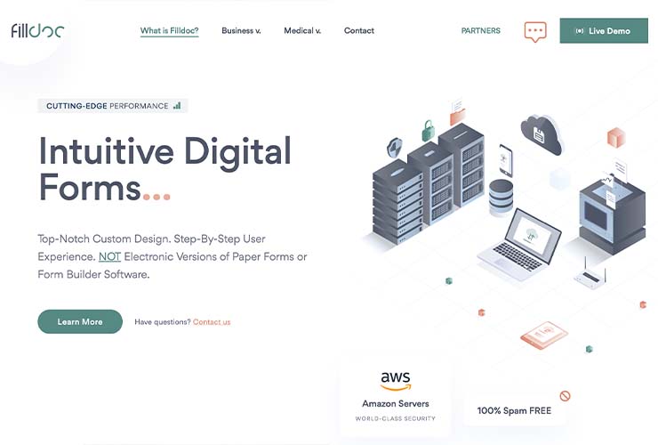 Filldoc is an innovative digital form solution that is custom-built to perform. Sleek and user-friendly, Filldoc is symbolic with top-notch custom design that complements a company’s branding. It is anything but basic, and it is NOT simple electronic versions of paper forms or DIY form builder software. Through its step-by-step digital form completion process and conditional logic capabilities, Filldoc provides an enhanced user experience. Digital signatures with tracking data, document/photo/ID uploads, and online payments all come standard. Filldoc can also seamlessly integrate with numerous platforms for Email Marketing, SMS Notifications, CRM, EMR, and various Business Management Platforms. Filldoc is HIPAA, HITECH, and PCI DSS Compliant. It is also backed by a dedicated team who offers a stress-free experience and VIP service – no client effort required!